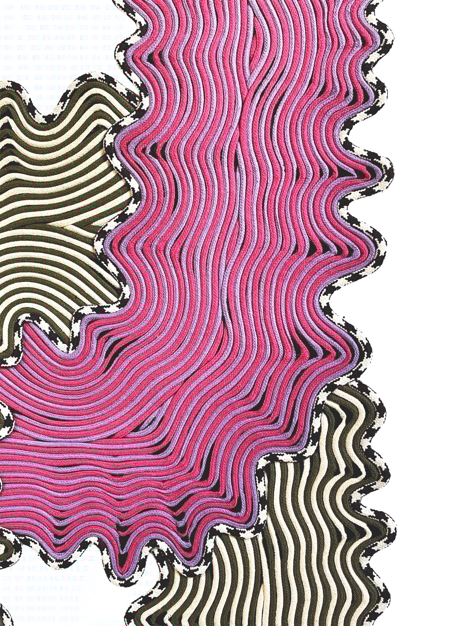 Originally created for the "Chasing the Light" installation at the Martell Foundation in Cognac, the Chain tapestries evoke intertwining chains. These pieces resonate with the techno music of the exhibition's nightclub, Chasing the Light.