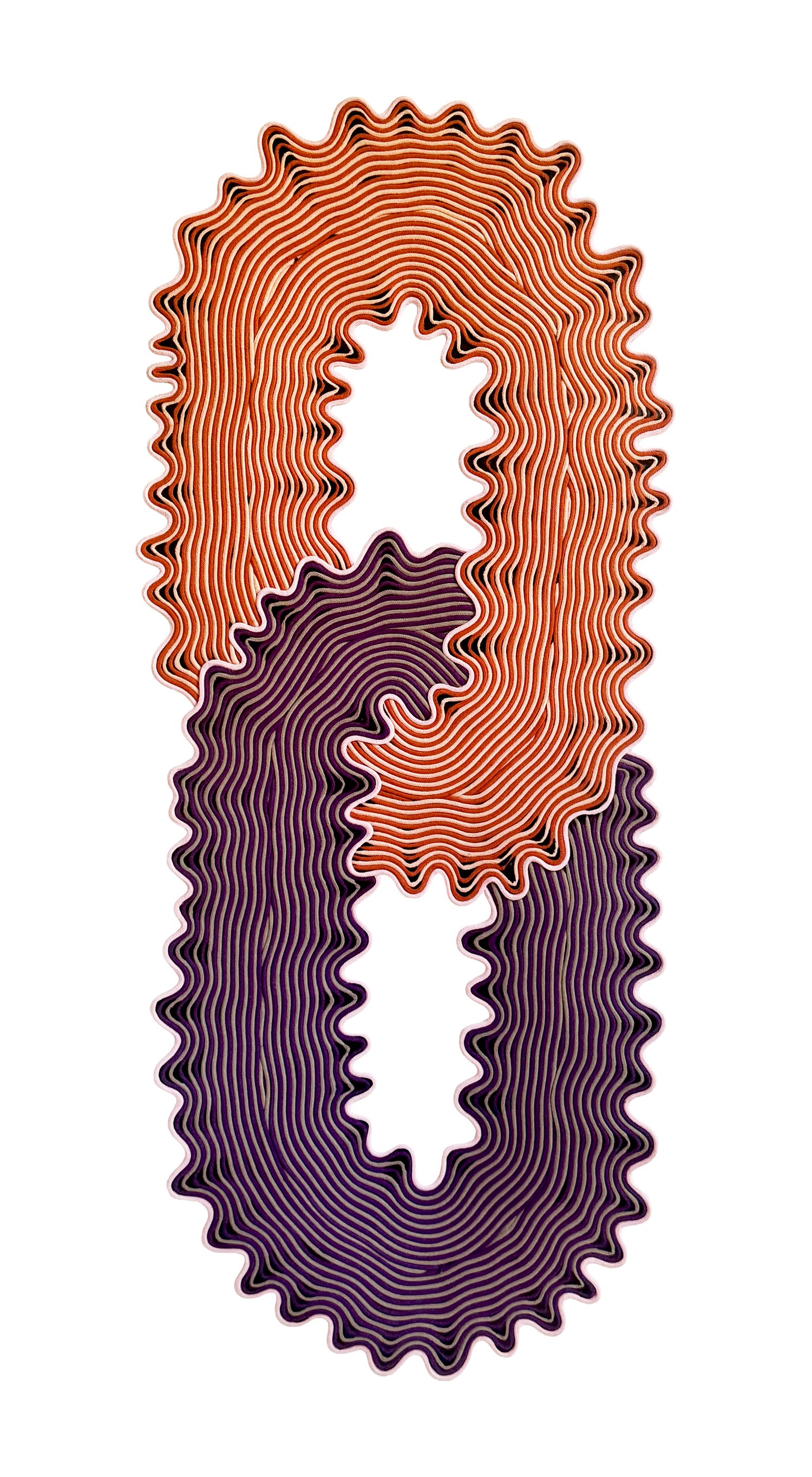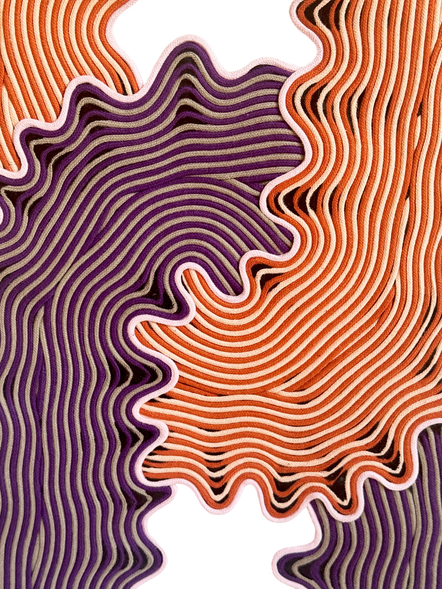 Originally created for the "Chasing the Light" installation at the Martell Foundation in Cognac, the Chain tapestries evoke intertwining chains. These pieces resonate with the techno music of the exhibition's nightclub, Chasing the Light.